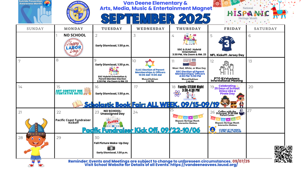 🗓️ September Calendar: Please refer to the monthly calendar above for key dates and events.