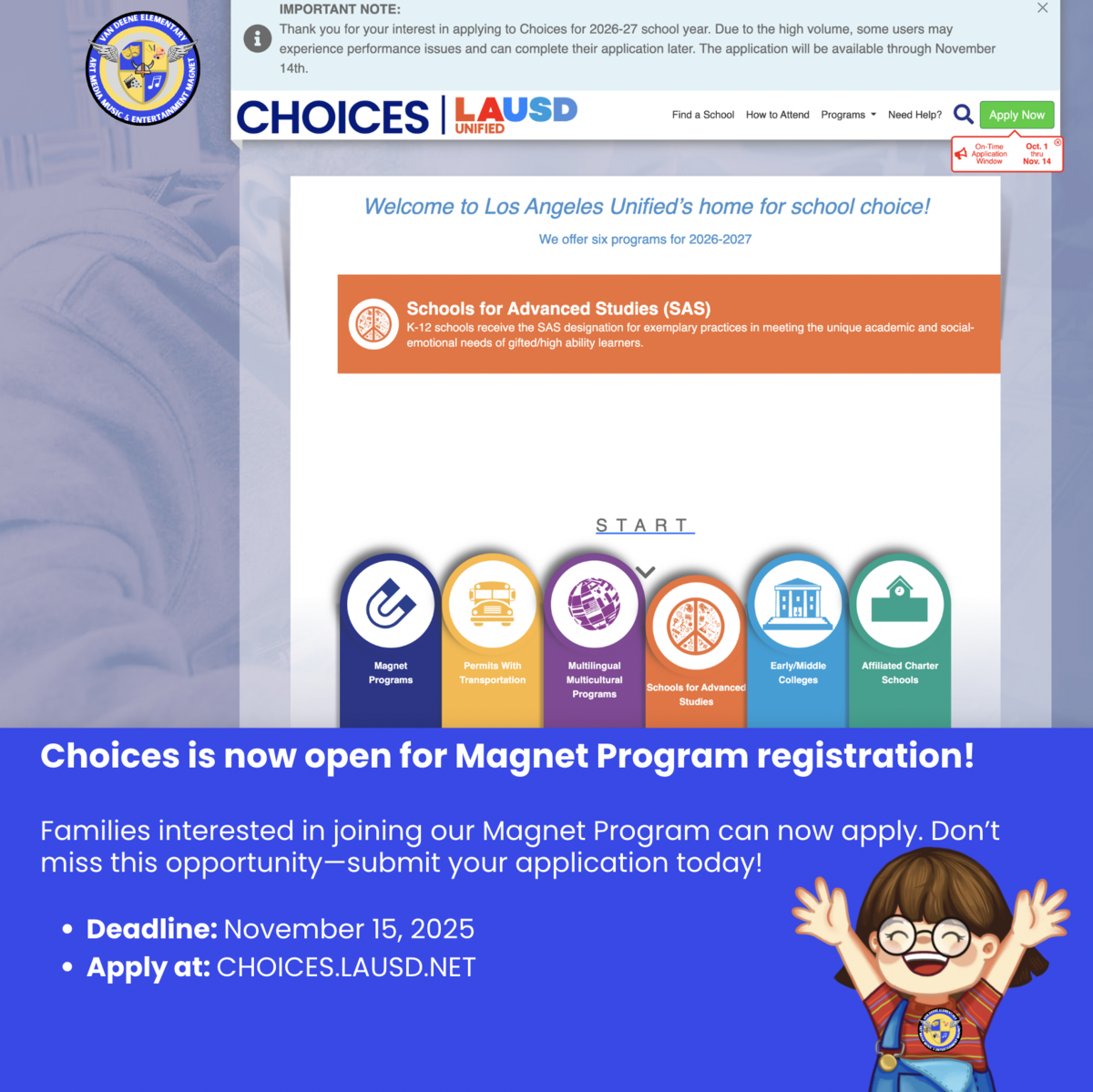 Families interested in joining our Magnet Program can now apply. Don’t miss this opportunity—submit your application today!