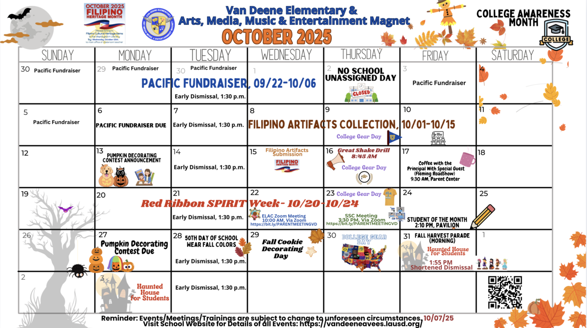 Revised October Calendar: Please review our updated monthly calendar above for important dates and upcoming events.