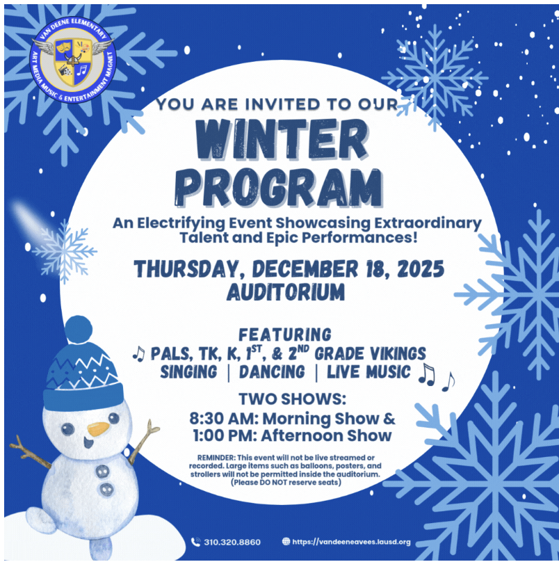 Due to limited seating capacity in our auditorium, we will be hosting two Winter Program shows—one in the morning and one in the afternoon.