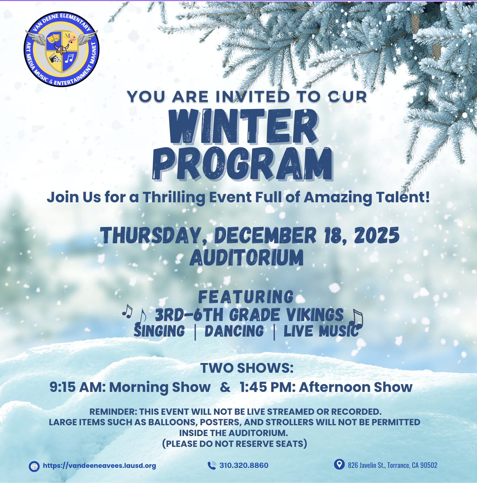 Due to limited seating capacity in our auditorium, we will be hosting two Winter Program shows—one in the morning and one in the afternoon.